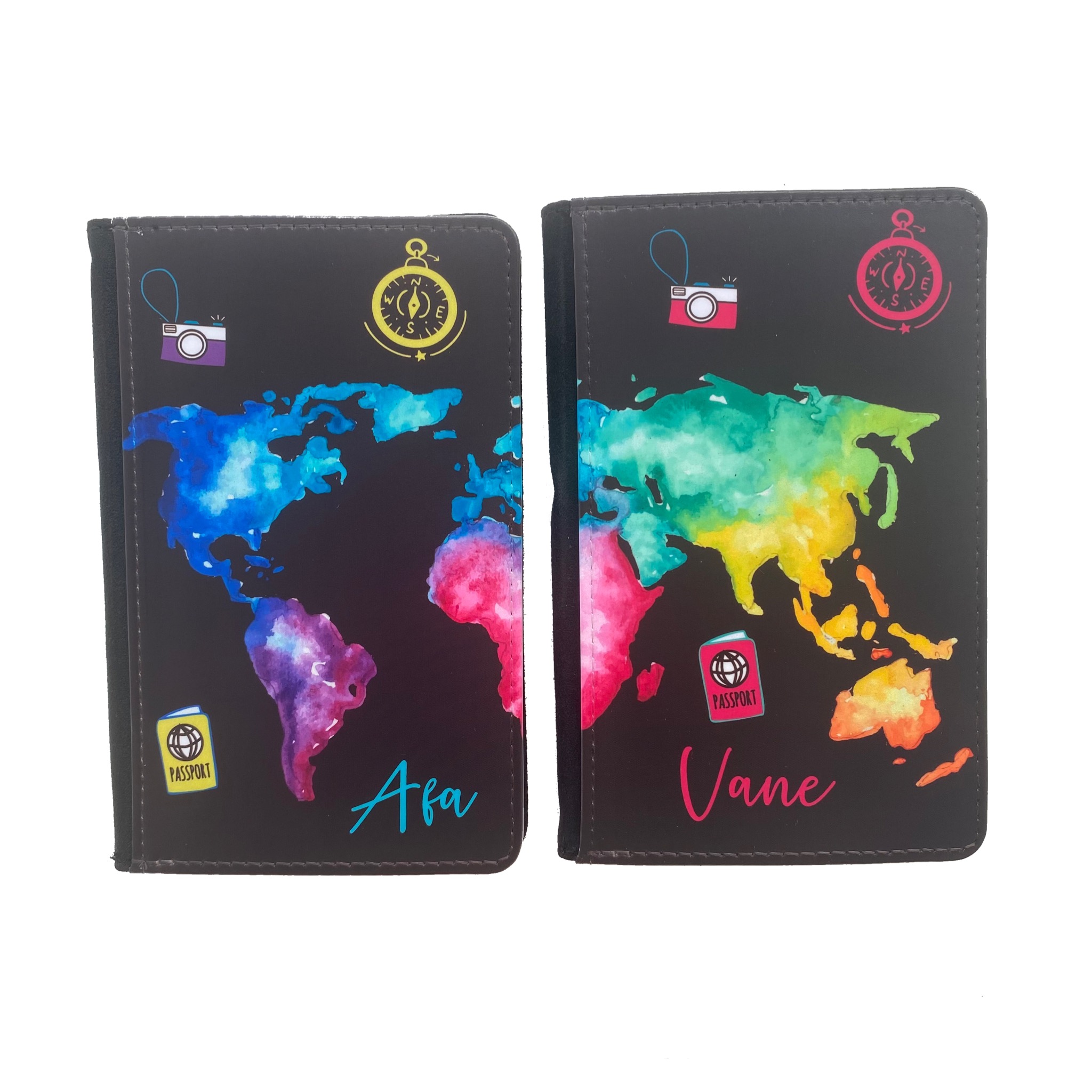 Con el portapasaporte proteges e identificas de una forma divertida tu pasaporte; En su interior hay compartimentos para documentos y tarjetas , la parte posterior su material es cuero sintético y el interior gamuza. Es posible personalizarlo con el nombre.
